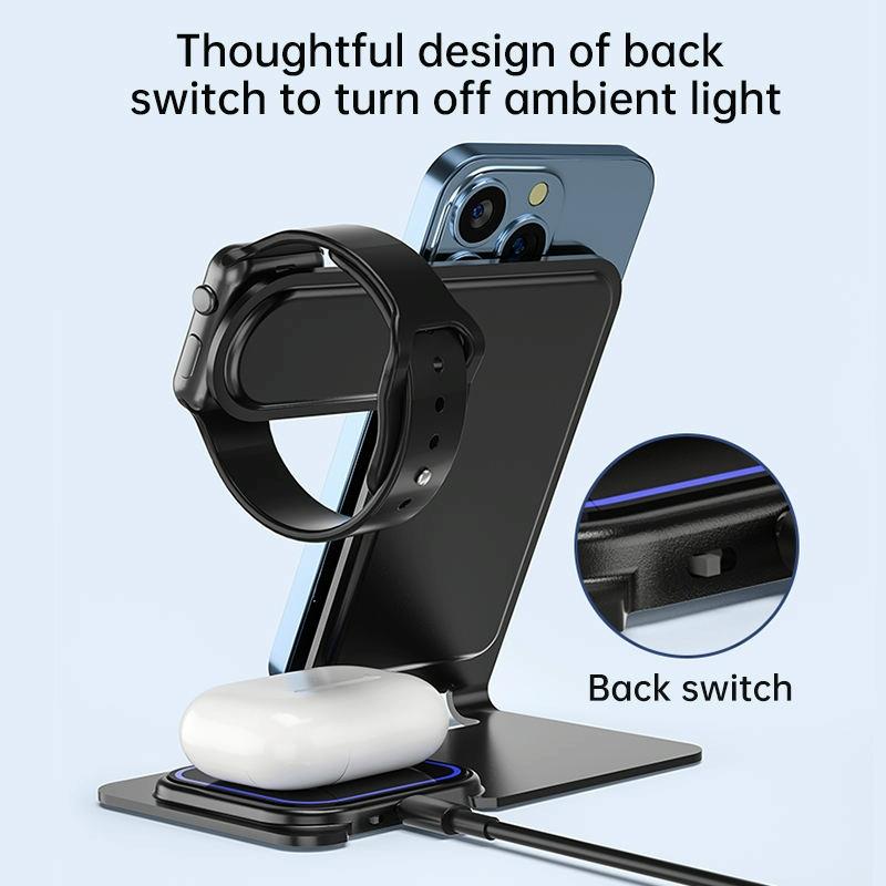 15W 3 In 1 Aluminum Wireless Charger - Grey