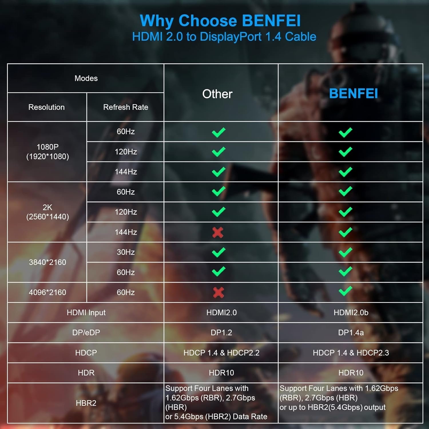 BENFEI 344GY-5M HDMI to DisplayPort Unidirectional 4K Active Cable with USB Powered 5M