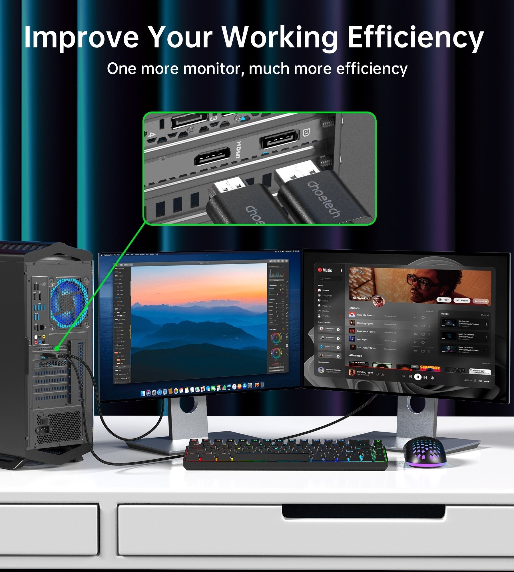 Adapter transmits audio & video from DisplayPort to HDMI2.0