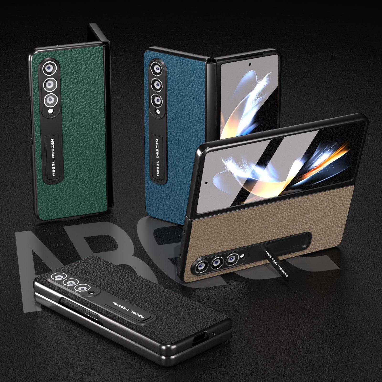 • 1 x For Samsung Galaxy Z Fold4 5G Leather Phone Case With Holder - Litchi Texture