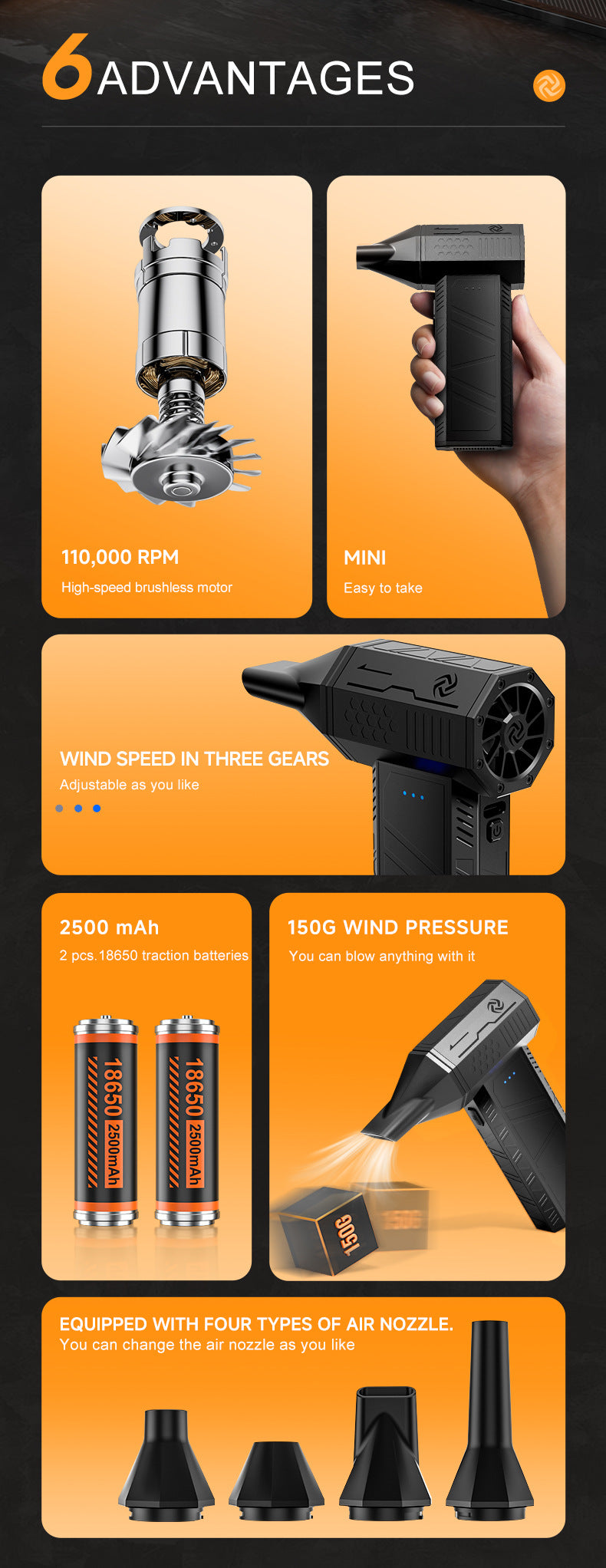 - Mini But Powerful: Delivers a strong 150G wind pressure for effective cleaning and drying.