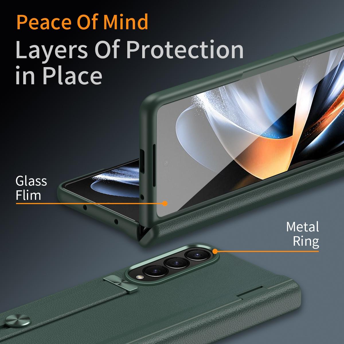 Samsung Galaxy z Fold 4 Leather Wristband Phone Case - Green