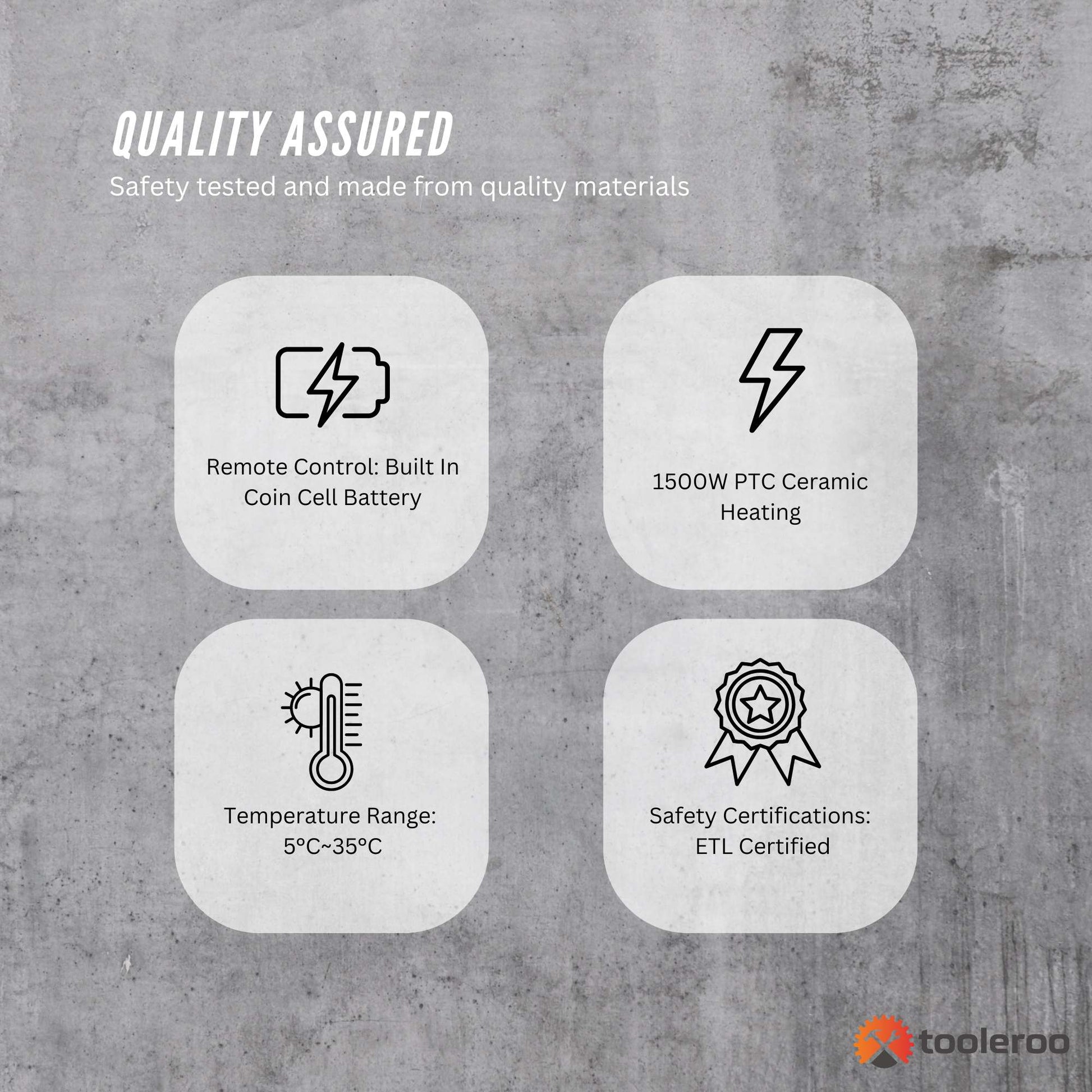 Tooleroo PTC Space Heater + Remote - 1500W Positive Temperature Coefficient